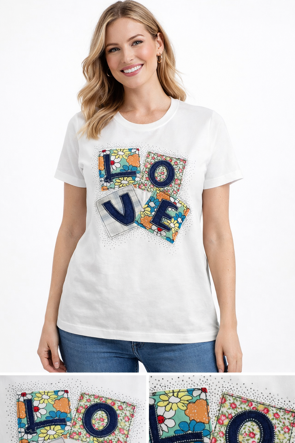 装饰元素:花卉印花、刺绣、烫钻装饰